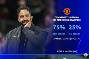 球迷调查:75%认为应解雇阿莫林、6成认为不该换马雷斯卡和阿隆索