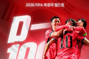韩国足协官方社媒晒出倒计时海报,配文:“2026年世界杯倒计时100天。100天后韩国足球将再度点燃全球激情,超越极限,团结一心。”