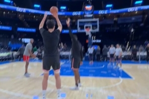 GIF-杨瀚森赛前热身三分4连击