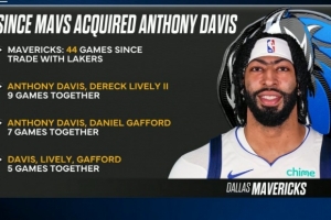 比赛转播商晒出了独行侠三大内线的缺阵和同场情况。