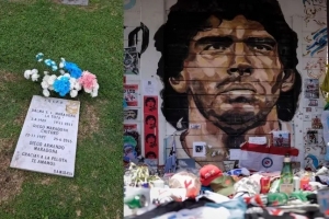 如今,马拉多纳长眠于布宜诺斯艾利斯贝拉维斯塔花园私人墓地,与他的父母朵娜·托塔和老迭戈相伴。在那里,一块简朴的墓碑守护着这位阿根廷球星的遗骸。由于一些不法分子企图盗窃,这块墓碑不得不频繁更换。无论他们是否得逞,都无法抹去他在全世界足球迷心中的记忆。