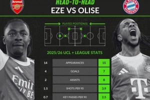体育资讯11月26日讯 拜仁和阿森纳即将迎来欧冠榜首之争,两位前水晶宫球员奥利塞和埃泽当前状态火热。whoscored也对比了两人本赛季联赛+欧冠的场均关键数据,后者全面占优。