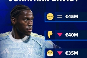 体育资讯12月3日讯 德国转会市场预热尤文前锋戴维的身价变化,他的最高身价为保持目前的4500万欧,最低可能降至3000万欧元。