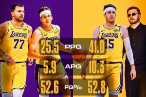 本赛季与东契奇同场时,里夫斯场均25.5分5.9助攻,投篮命中率52.6%,三分命中率35%;反之东契奇缺阵时,里夫斯场均41分10.3助攻,投篮命中率52.8%,三分命中率42.5%