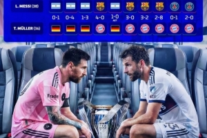 体育资讯12月6日讯 本届美职联总决赛将在迈阿密国际和温哥华白浪之间举行,38岁的梅西和36岁的穆勒也再次相遇。《转会市场》也列出了两人历史交锋情况: