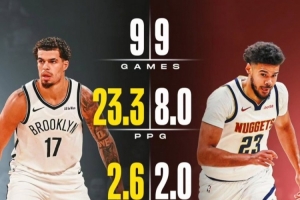 小波特前九场:场均23.3分7.6篮板2.6助攻,命中率47.2%