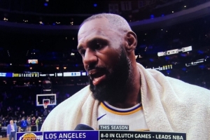 体育资讯12月8日讯 NBA常规赛,湖人客场112-108击败76人,詹姆斯赛后接受了媒体采访。