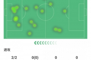 射门2次射正2次,丢失球权4次,预期进球0.38球
