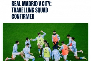 曼城欧冠客战皇马大名单: