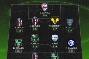 后卫:霍尔姆(博洛尼亚,7.98分)、卢库米(博洛尼亚,8.25分)、维克托·尼尔森(维罗纳,8.19分)、安东尼诺·加略(莱切,7.59分)
