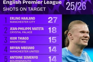 下一篇: 本赛季英超射门榜:哈兰德45次居首,加克波、姆伯莫、萨拉赫在列