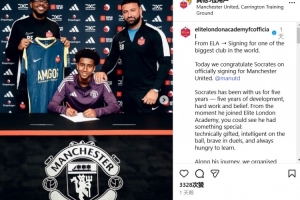 体育资讯12月12日讯 曼联官方宣布签下13岁中卫索克拉蒂斯(Socrates)。
