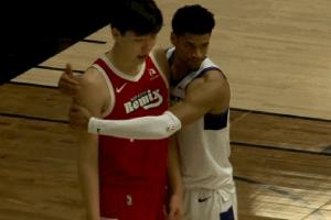 GIF-考德威尔爱的抱抱杨瀚森 瀚森害羞的笑了