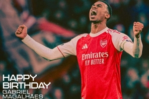 体育资讯12月19日讯 今天是阿森纳后卫加布里埃尔28岁生日,枪手官方晒图,为其送上祝福。