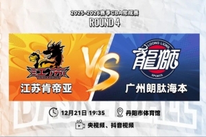 12月21日19:35,2025-26赛季CBA常规赛第四轮,江苏肯帝亚将继续坐镇主场丹阳市体育馆迎战广州朗肽海本。