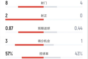 控球率57%-43%