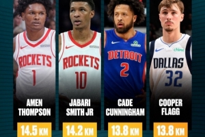 赛季第九周(12月16日-22日)联盟跑动距离(均出战3场比赛)最长的球员: