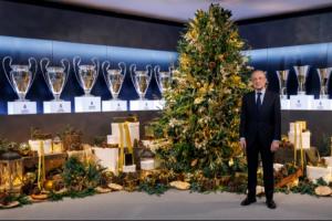 体育资讯12月24日讯 今天是西方传统节日平安夜,皇马官方晒出多组图片,俱乐部的荣誉室已换上了全新打扮,15座欧冠奖杯被映衬出金光。