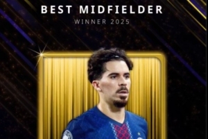 体育资讯12月29日讯 2025环足奖颁奖典礼正在进行中,25岁的维蒂尼亚当选为年度最佳中场。