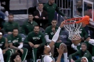 GIF-字母哥转身扛开小桥,左手单臂虐筐