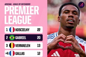 体育资讯1月6日讯 Opta统计了阿森纳队史后卫英超进球数量,并列出榜单,科斯切尔尼22球居首,加布里埃尔20球次席。