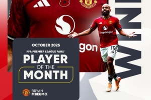 体育资讯11月13日讯 英格兰职业足球运动员协会(PFA)官方消息,曼联前锋姆伯莫被评为PFA英超球迷票选月度最佳球员。