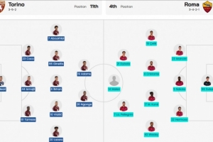 体育资讯1月19日讯 北京时间凌晨1点,意甲第21轮,都灵vs罗马的首发阵容公布。