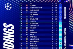 目前欧冠前二名阿森纳和拜仁确定了直通16强名额,但有且仅有他们两队。从第3的皇马往后数,有十多支球队将竞争直通淘汰赛的名额,其中第6巴黎到第13亚特兰大均为13分,8队同分竞争难度可想而知。